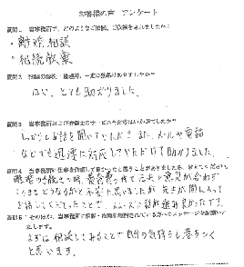 しっかりとお話を聞いていただき、また、メールや電話などでも迅速に対応していただけて助かりました。