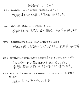 全くわからない中、丁寧に御説明・御対応して下さり、専門家の先生にお願いして本当に良かったと思っています